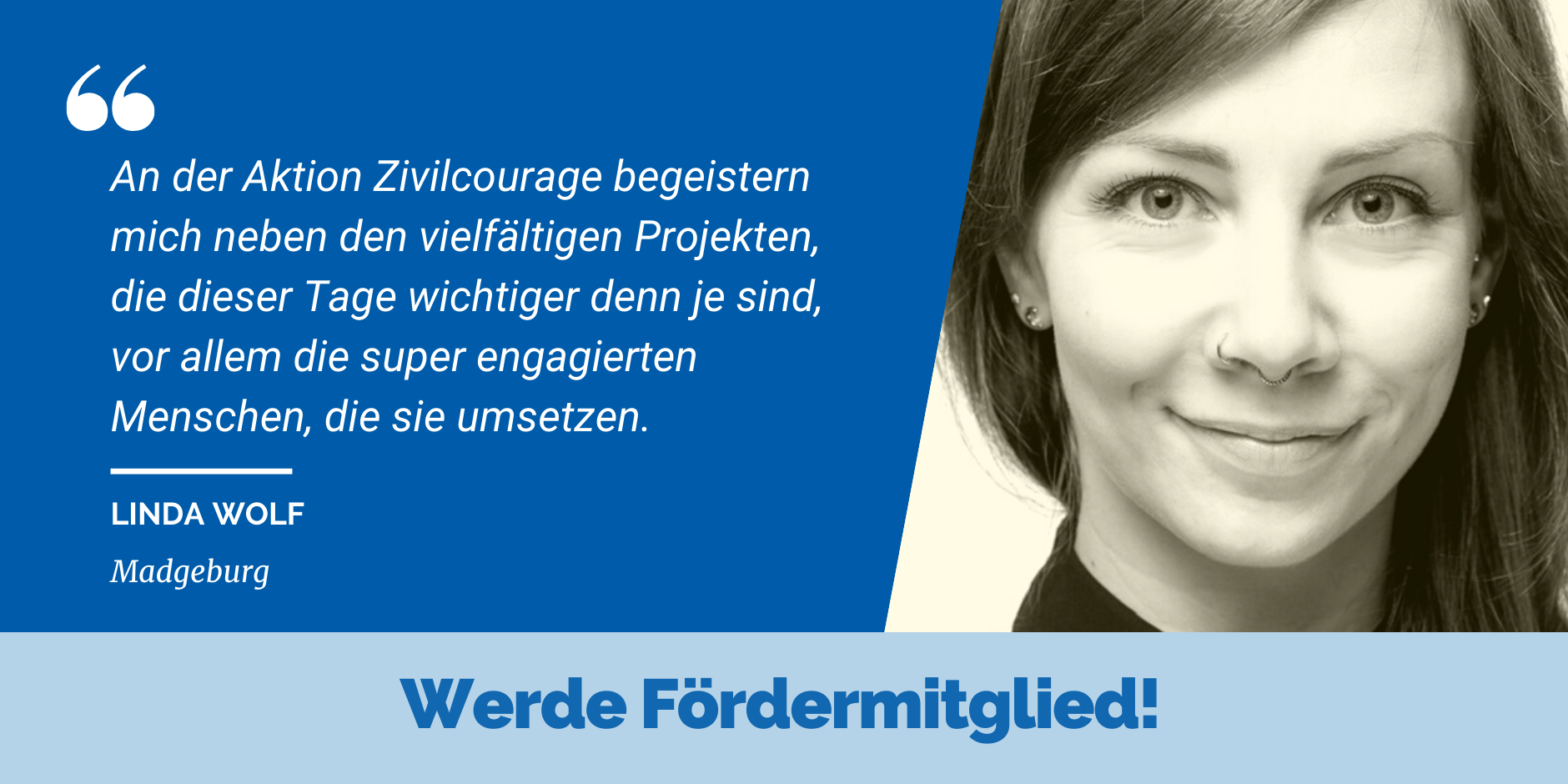 Bereits mit 50 Euro pro Jahr können Sie uns wahnsinnig weiterhelfen. Werden Sie Fördermitglied und unterstützen Sie unsere Arbeit nachhaltig. Hier geht's zum Antrag.